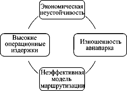 Проведенный сравнительный анализ мне-ний экспертов выявил ряд взаимосвязанных проблем, образующих «порочный круг» неэффективности региональной гражданской авиации (рис. 1).