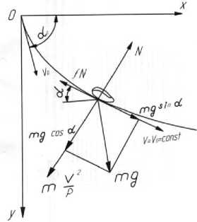 где v - скорость зерна в произвольной точке кривой; V o - скорость зерна до падения на кривую.