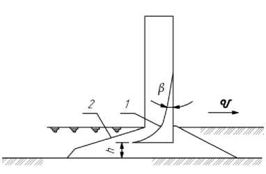 /3- угол наклона образующей; h - высота установки отражателя семян от дна борозды