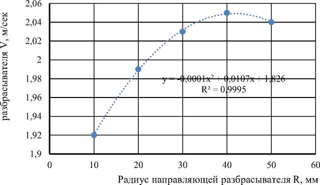 Рисунок 4 – Зависимость скорости зерна при сходе с разбрасывателя V в от радиуса направляющей разбрасывателя R