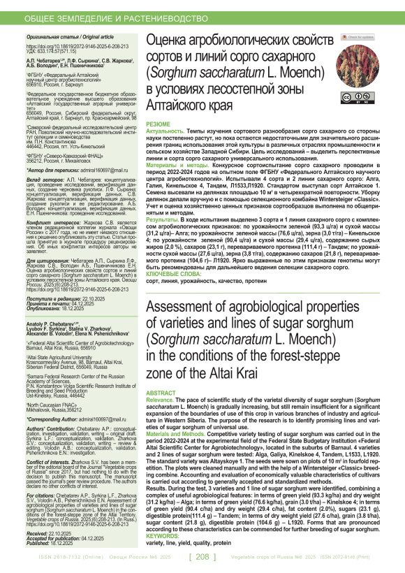 IDR: 140313421 | УДК: 633.174:57(571.15) | DOI: 10.18619/2072-9146-2025-6-208-213