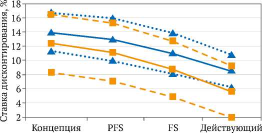 Рис. 3. Ставка дисконтирования для денежных потоков в реальном выражении для проектов на разных стадиях