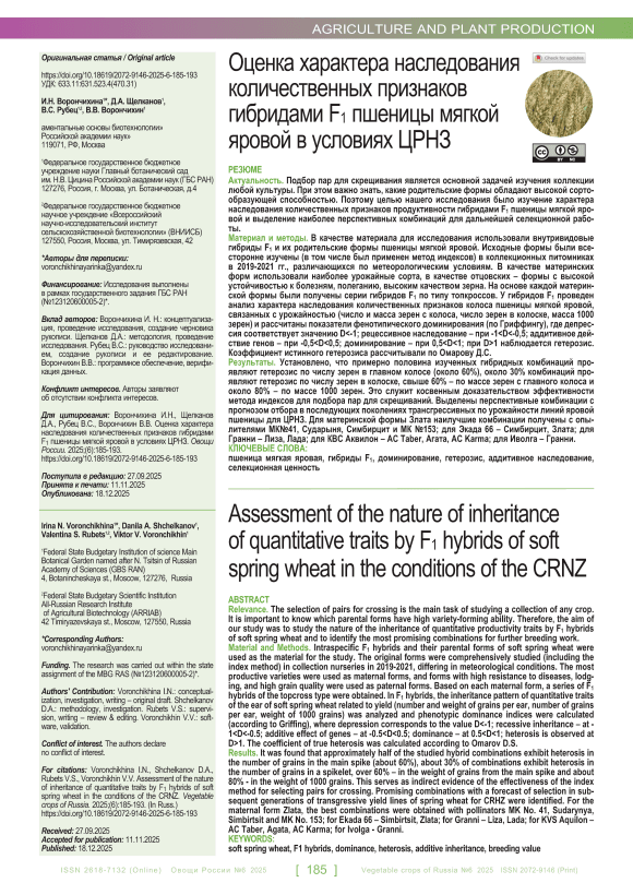 Vegetable crops of Russia №6 2025 ISSN 2072-9146 (Print)