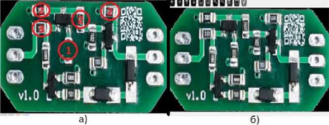 Рисунок 4 – Изображение с обозначенными дефектами (а); Изображение идеальной платы