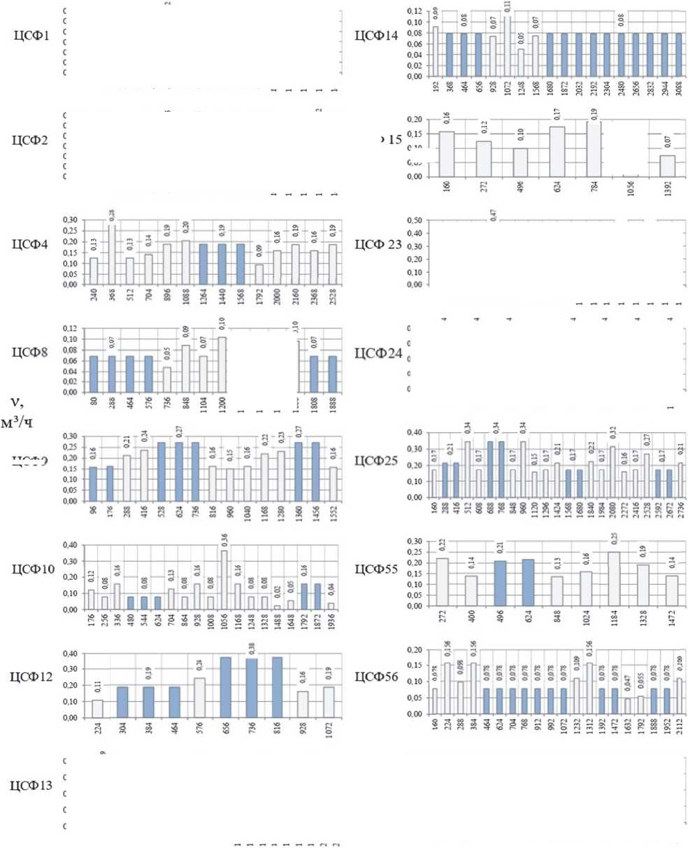 На начальном этапе на уровне эмпирического познания осуществляли анализ уже накопленно- го контента информации об исследуемом комплексе ЦСФ и произвели первичную систематизацию полученных знаний о потерях (энтропии) СОЖ в форме таблиц, диаграмм, графиков и на их основе, проявления ситуаций со стабильностью (ν′ = const) и нестабильностью (ν′ ≠ const) скорости распределенных неизбежных потерь объемов СОЖ за один цикл оборота в ЦСФ, за 1 час и средних по ЦСФ и группам ЦСФ.