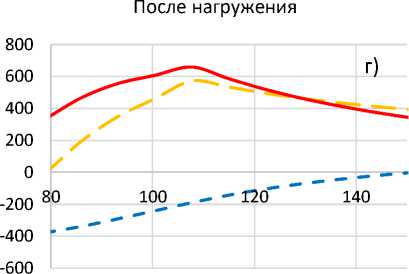 814 МПа, то ее напряженное состояние изменяется на различных этапах ее нагружения в соответствии с графиками, представленными рисунками 1 б), 1 в) и 1 г), полученными путем численного моделирования методами, изложенными в статье [3].