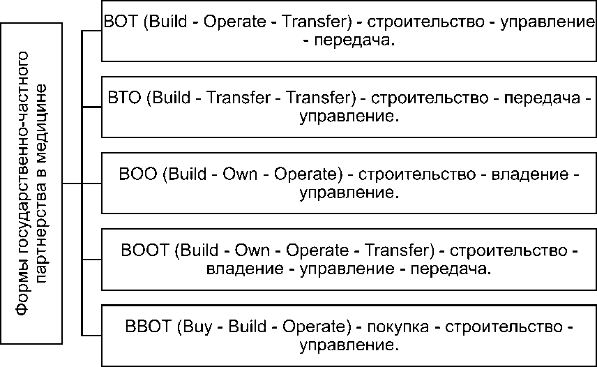 Выделяется несколько форм государственно-частного партнерства в области медицины (рисунок 1).