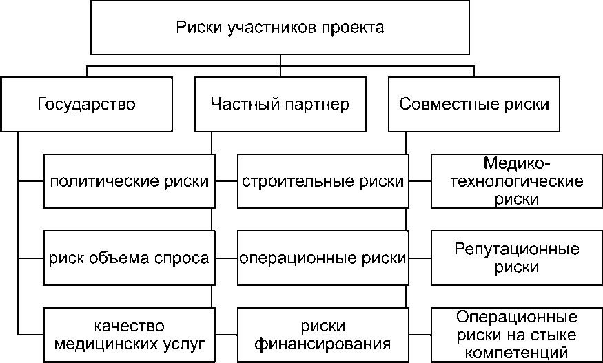 Государственно-частное партнерство, соглашение, политические риски, строительные риски, операционные риски, риск объема спроса, медико-технологические и репутационные риски