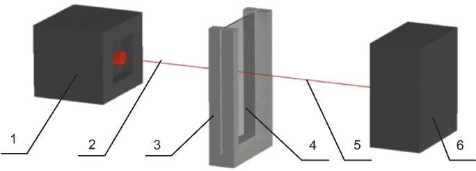 5 – излучение после прохождения объема материала; 6 – детектор ИК-излучения Figure 1 – Schematic diagram of the experimental setup: