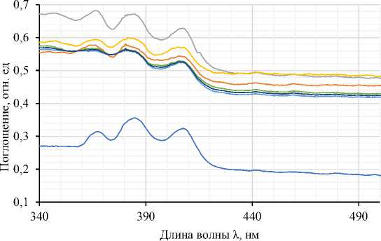 Рисунок 3 – Спектры поглощения в диапазоне 340–500 нм