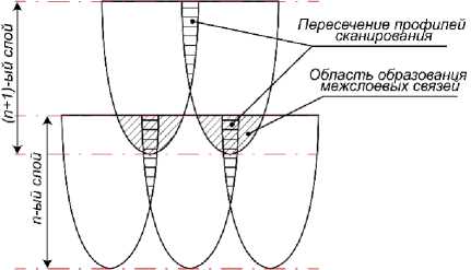 Figure 5 – The shape of the distribution of light energy when scanning a photopolymer material in the volume of layers сечении двух соседних слоев можно представить условно с упрощением в соответствии с рисунком 5.