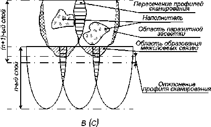 Шаблоны имеют область пересечения профилей сканирования в рамках одного слоя, что формирует жесткую структуру и минимизирует возможность возникновения пустот между профилями сканирования (Chen et al, 2009). При построении последующих слоев, в дополнение к пересечению профилей сканирования в рамках нового слоя, возникает область образования межслоевой связи (Gibson et al, 2021; Davis, 2001).