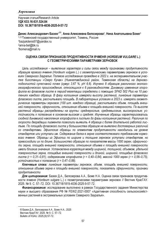 IDR: 140312340 | УДК: 633.16:631.524.84 | DOI: 10.36718/1819-4036-2025-9-57-72