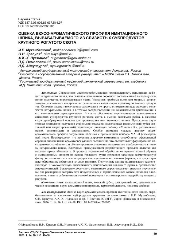 IDR: 147253474 | УДК: 637.5.03:006.86:637.514.97 | DOI: 10.14529/food260105