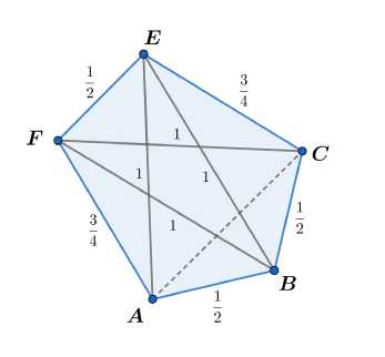 | AB | • | EF | + | AF | = | AB | • | EF | + | AF | • | EB | > | AE | • | BF | = 1.