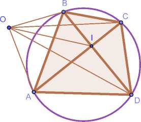 | BD | • (|OA | 2 • | AI | + | OC | 2 • | CI|) = | AC | • (|OB | 2 • | BI | + | OD | 2 • | DI|) . (4)