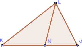 Lemma 1 (Stewart’s theorem) . Let AKLM be a convex triangle in the Euclidean plane, and N is a point of the side KN . Then we have the following equality:
