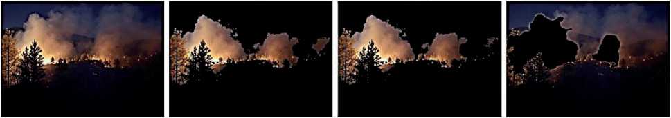 - определение способности методов сегментировать начинающиеся очаги возгорания при сохранении высокой скорости обработки, что важно для задач мониторинга пожаров в реальном времени. Результаты экспериментов представлены на рисунках 3-6.