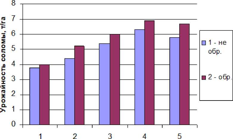Рисунок 1 – Урожайность соломы озимой ржи, т/га