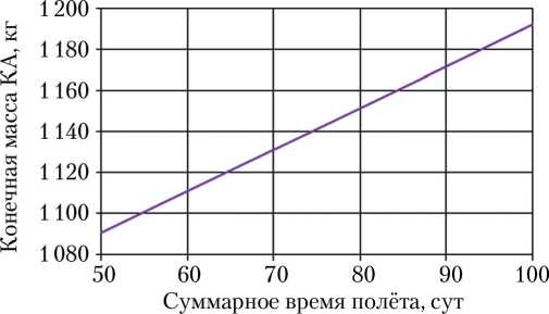 В качестве критерия оптимизации схемы перелёта выступает конечная масса КА на рабочей орбите, которая максимизируется (для ряда фиксированных значений времени перелёта).