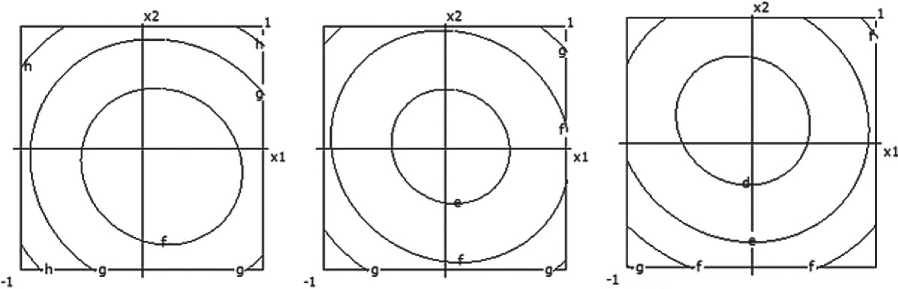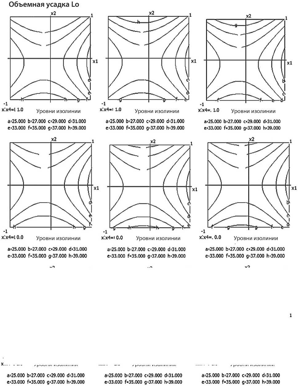 В качестве целевых функций (откликов) были выбраны: Y1 – плотность, г/см³; Y2 – водопоглощение, %; Y3 – прочность на сжатие после обжига, МПа; Y4 – объемная усадка, %.