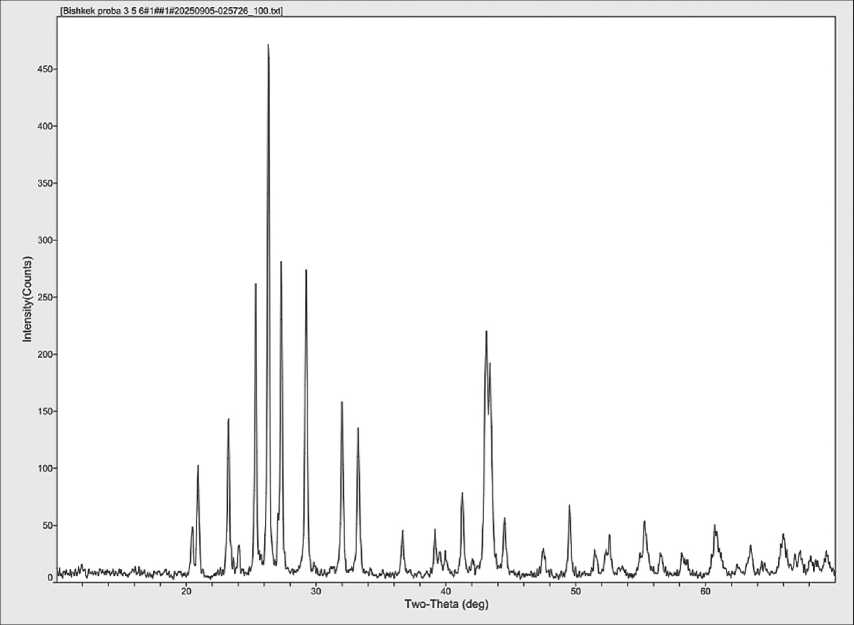 Химический состав барита месторождения Арсы был исследован с использованием атомно-эмиссионного спектрального анализа, рентгенофлуоресцентного анализа и силикатного химического анализа. Рентгенодифрактометрический анализ проводился на дифрактометре AL-27MINI в диапазоне 2θ от 10° до 70°. Скорость сканирования составляла 4°/мин при шаге 0,04°. Рабочее напряжение и сила тока составляли, соответственно, 30 кВ и 10 мА. Фурье-ИК спектры были зарегистрированы на спектрометре