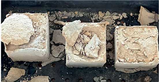 использования барита в количестве 20–30% и микрокремнезема – до 10% при температуре обжига 850–900 °C и продолжительности термообработки 30–45 минут. Указанный состав и технологический режим обеспечивает получение композита с высокими показателями прочности и водостойкости.