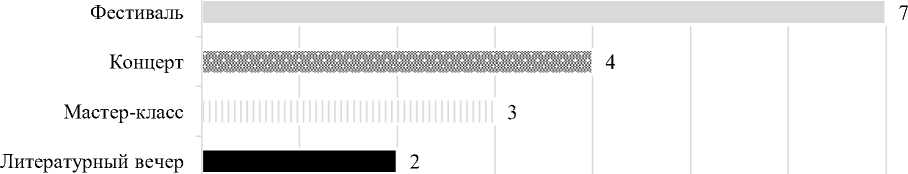 популярности – концерт, затем мастер-класс, меньшее количество голосов – литературный вечер.