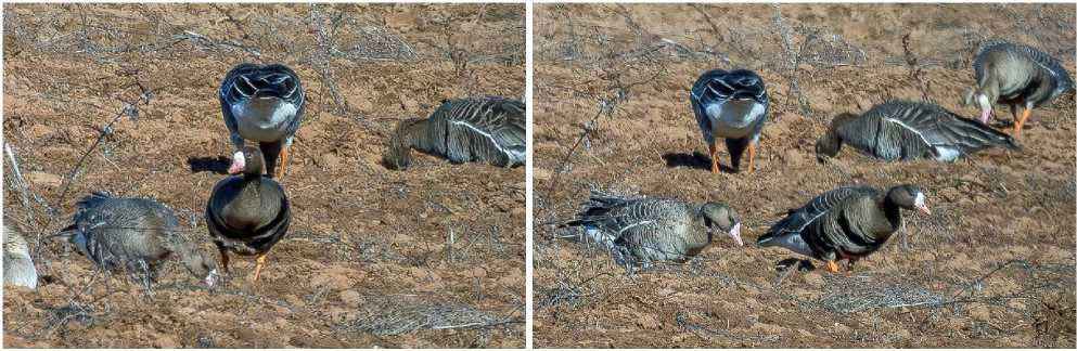 Рис. 14. Белолобый гусь Anser albifrons аномальной окраски. Окрестности Кирово-Чепецка. 16 апреля 2025. Фото Е.А.Вотинцевой