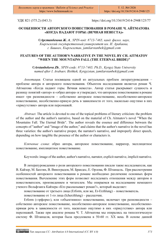 IDR: 14135242 | УДК: 821 (575.2) (043.3) | DOI: 10.33619/2414-2948/125/77