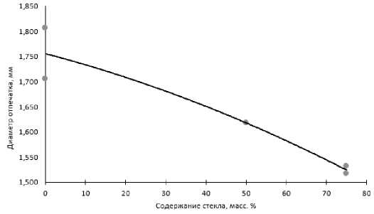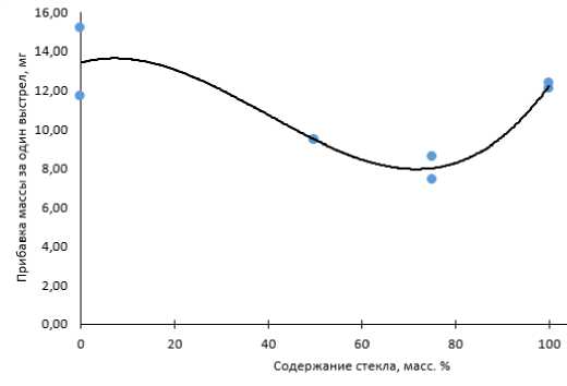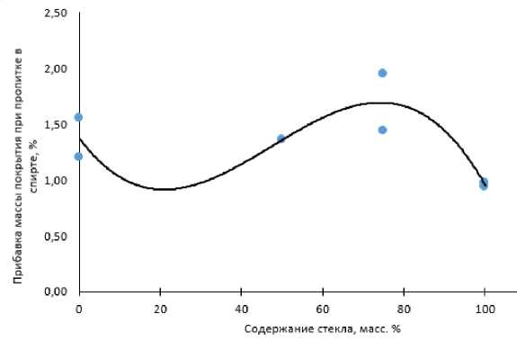 Рис. 3. Зависимость прибавки массы ТБП при его пропитке спиртом от содержания стекла