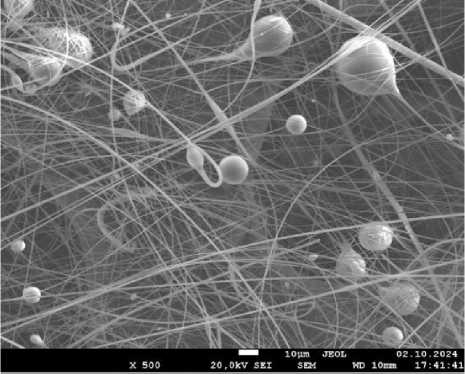Выяснилось, что после вылета из ствола детонационной установки капли стекла «разматываются» сверхзвуковой струей на тончайшие нити, объединяющиеся в хлопья «снега», которые разлетаются по камере. На рис. 13 показаны микроизображения стеклянных нитей в таких хлопьях. Кроме того, нанесение толстых слоев оказалось проблематичным, поскольку при увеличении толщины слой легче откалывается под ударами струи из пушки.