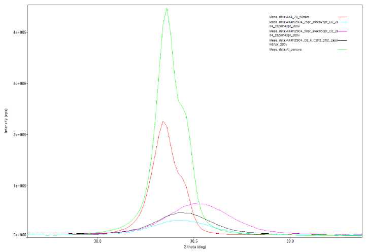 Рис. 5. Дифрактограммы вблизи главного рефлекса алюминия
