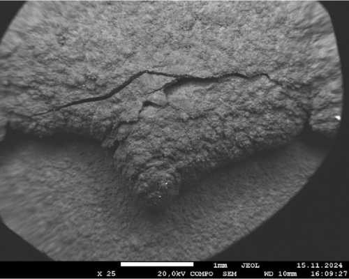 Рис. 8. Настыль с трещиной на поверхности образца АК4(51)