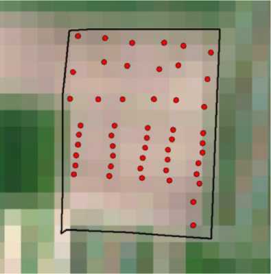 На тестовом поле 15.05.2024 г. было отобрано 48 смешанных образцов поверхностного горизонта пахотных почв (0–5 см) (рис. 2).