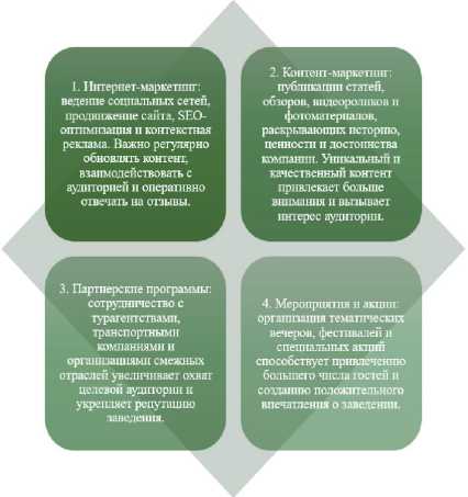Одной из наиболее значимых составляющих успешного продвижения предприятия индустрии гостеприимства является налаженный механизм обратной связи с клиентами. Своевременное получение отзывов, обработка жалоб и реагирование на пожелания гостей способствуют созданию и поддержанию позитивного имиджа учреждения [9].