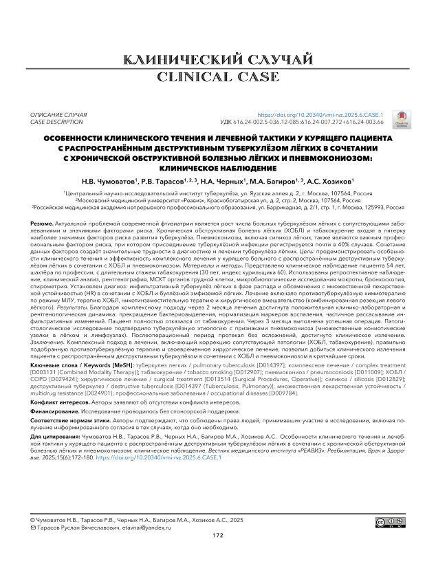 Особенности клинического течения и лечебной тактики у курящего пациента с распространённым деструктивным туберкулёзом лёгких в сочетании с хронической обструктивной болезнью лёгких и пневмокониозом: клиническое наблюдение