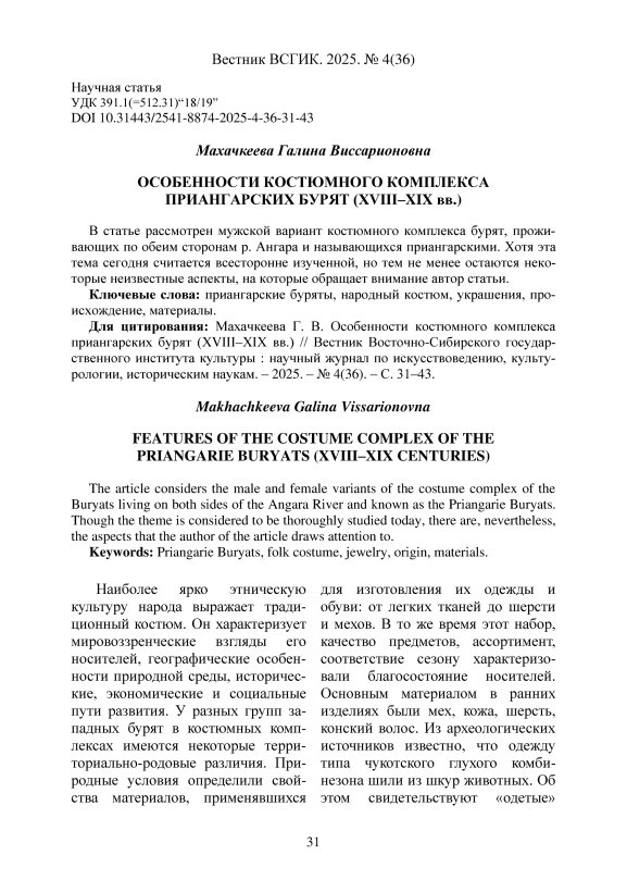 Особенности костюмного комплекса приангарских бурят (XVIII–XIX вв.)