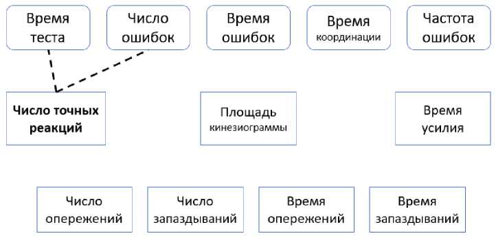 Произвольный контроль движений и мышечных усилий оценивали, применяя комплекс показателей, отражающих различные уровни указанного контроля: сенсомоторное реагирование (тест «Реакция на движущийся объект»), регуляция усилий (тест «Мышечная выносливость»); регуляция движений (тест «Динамическая треморометрия по профилю») и постуральный контроль (проба с открытыми глазами с применением инерционного сенсора «Нейросенс»). Указанные тесты реализованы в лицензионных аппаратно-программных комплексах «НС-ПсихоТест» и «Стэдис-Баланс» (ООО «Нейрософт», . Исследуемые показатели представлены на рис. 1 и 2.