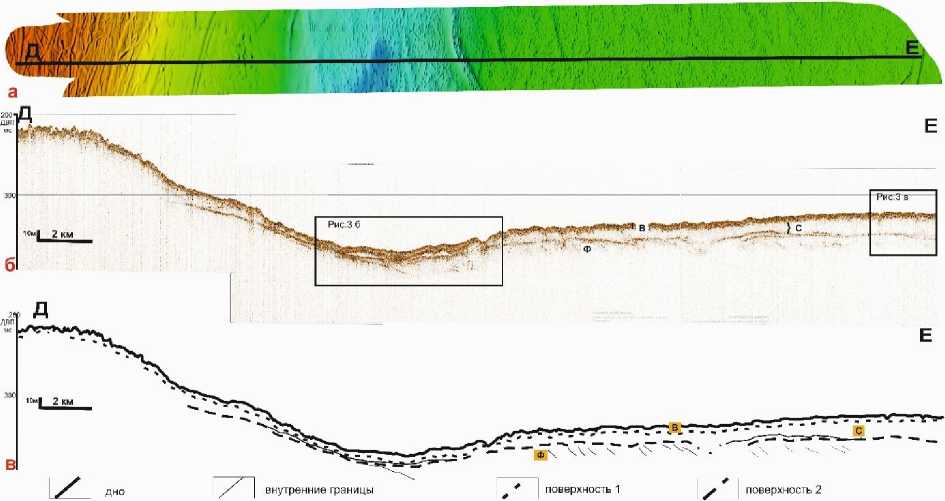 в – interpretation of the seismic-acoustic profile. The profile location is shown in Fig. 1