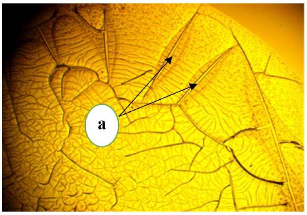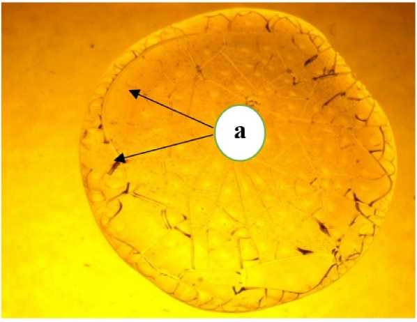 Рисунок 2 – Фрагмент фации сыворотки крови больного теленка: частично радиальный тип; а - токсическая бляшка, ув. x 40.