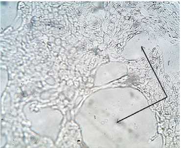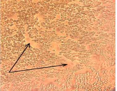Рисунок 2 - Культура клеток РК-15, третьего пассажа через 72 часа после зараженная суспензией из тканей кишечника, ЦПД 3 креста