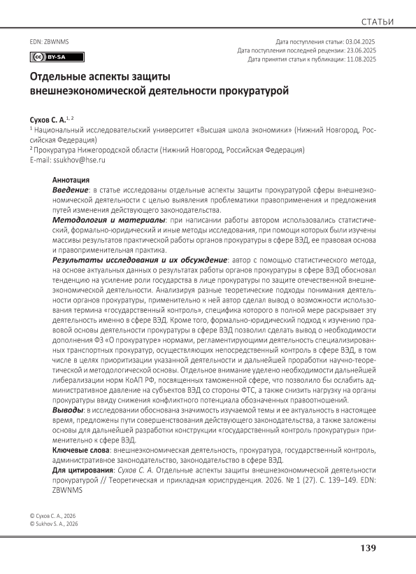 Внешнеэкономическая деятельность, прокуратура, государственный контроль, административное законодательство, законодательство в сфере ВЭД
