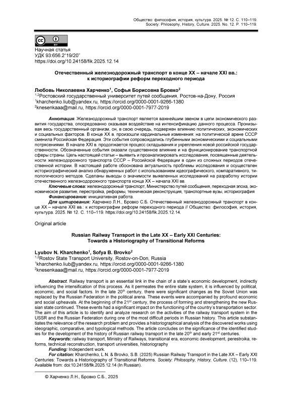 IDR: 149150254 | УДК: 93:656.2“19/20” | DOI: 10.24158/fik.2025.12.14