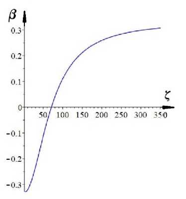 Оказывается, что для f o = —0.9999 и начальной точки Z o = 2/(п — 2.6) функция состояния β в отсутствии массовой материи на Рис.5 описывает полную эволюцию открытой безмассовой Вселенной, начинающейся с вакуумного состояния космических релятивистских струн (в = -1/3) и заканчивающейся ультрарелятивистской стадией ( в = 1 / 3).