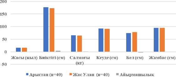 Текст научной статьи Оңтүстік және солтүстік өңірлердегі кадеттердің антропометриялық типологиясы мен жалпы білім беретін мектеп оқушыларының көрсеткіштерінің салыстырмалы талдауы