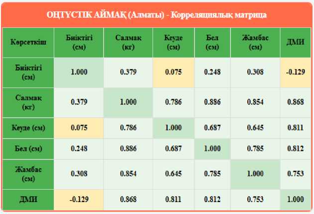 Зерттеу шеңберінде 6 базалық антропометриялық өлшем енгізілді: