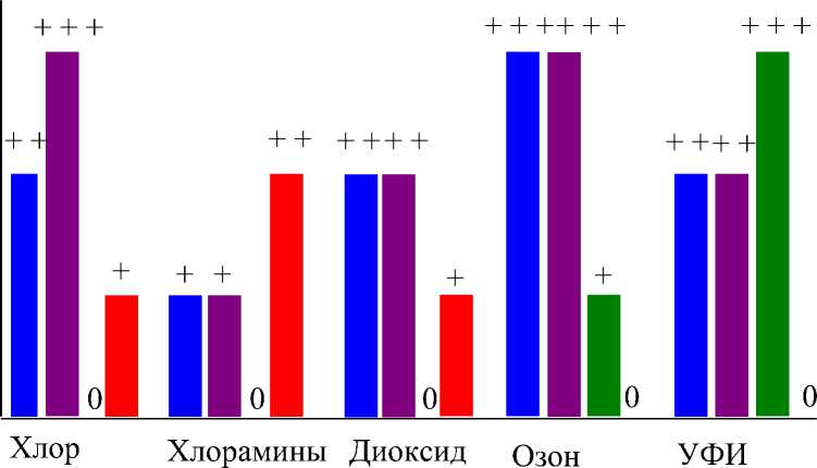 Рисунок 1 – Потенциальные области применения основных дезинфектантов.