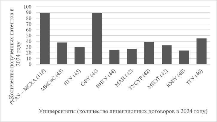 Fig. 4. Licensing activity of the leading universities by the number of patents in 2024