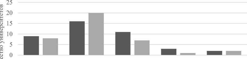 Рис. 2. Патентная активность университетов РФ по двум выборкам: